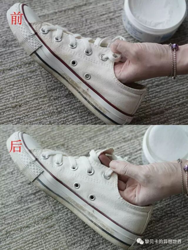 爽身粉大概是鞋子变白最快的方法了,生日合照靠不洗头杀出一条血路的助理小妞PM说,比起洗洗洗,这个真的太省事了,她打算以后只用这招(我已经送过她一个大白眼)。