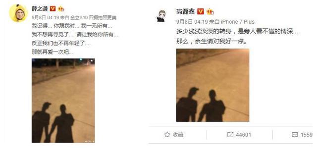 小编还发现了一件有意思的事情,大家都知道薛之谦在微博高调与前妻复合了,写了一番话配上一张两人影子的照片,没想到胡彦斌悄悄的搞事了。