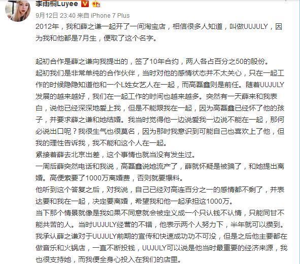这是前女友李雨桐半夜发的微博,太长了小编就不截全部了,总结一下就是: