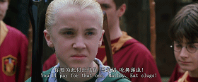 现场还原:在马尔福侮辱赫敏为“泥巴种”,并且攻击他的红头发之后,罗恩忍不了对马尔福的怒火,向马尔福施了鼻涕虫咒。没想到咒语居然向后发射出来。