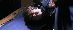 ▲罗恩对马尔福施了鼻涕虫咒,没想到却作用到了自己身上