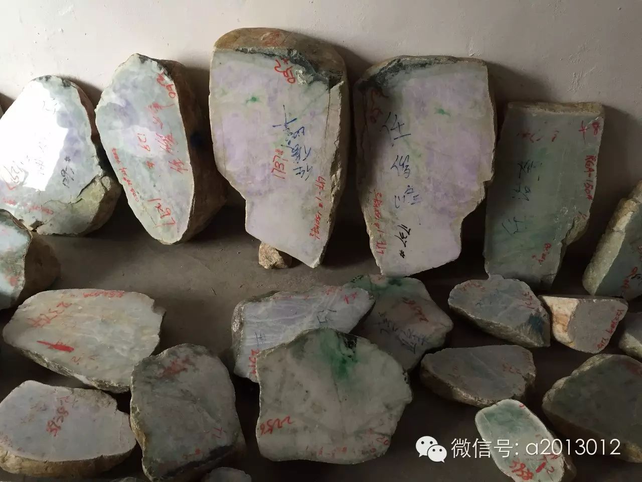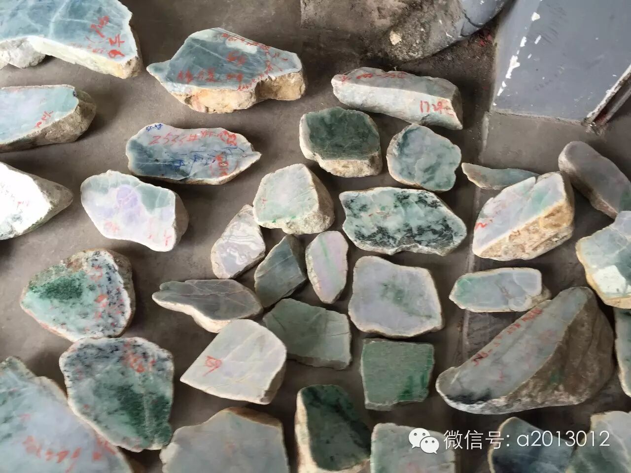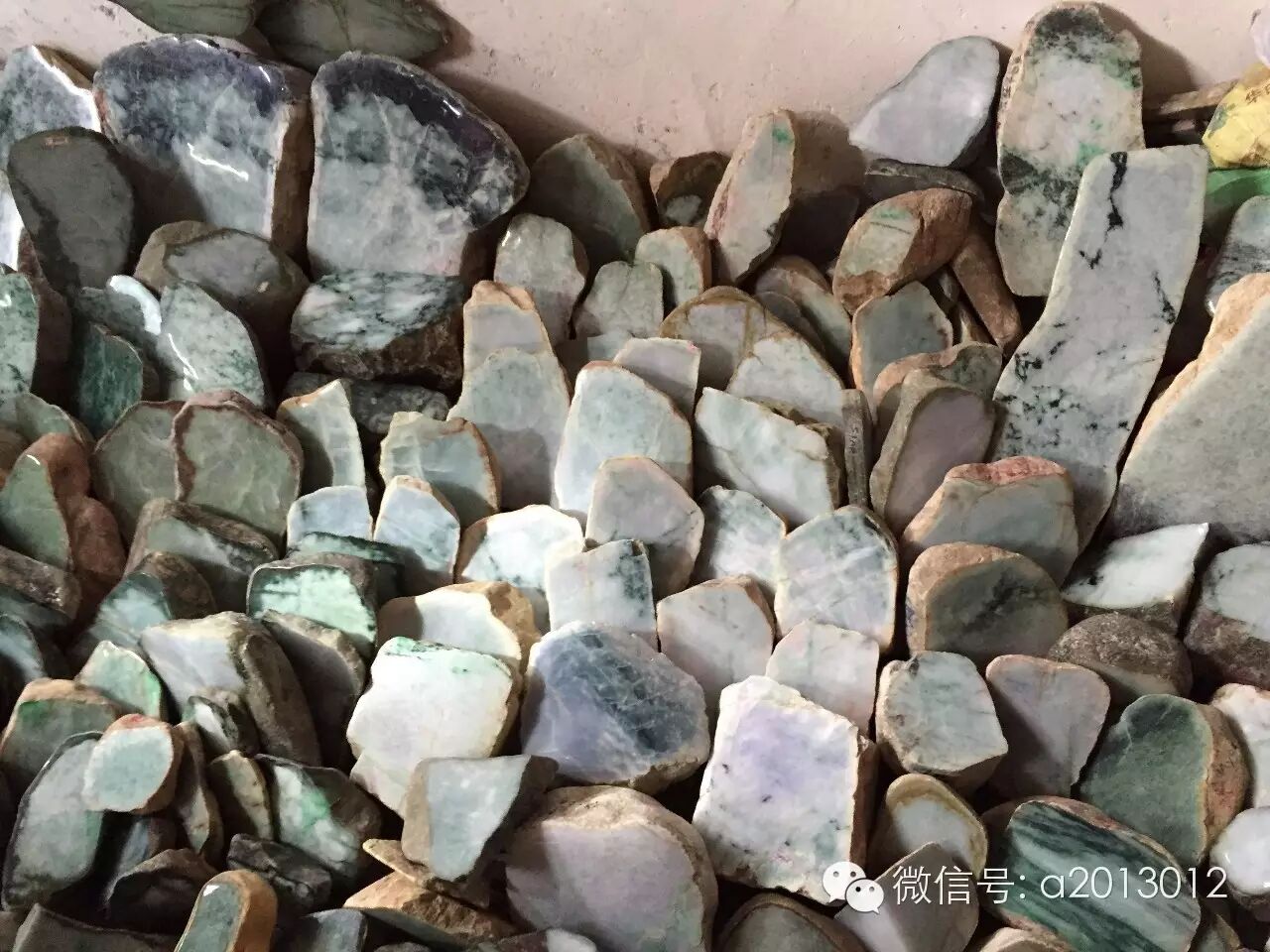 再看看这些一分为二的半明料,行内也叫砖头料。市场上和国内一些地方公盘上大部分是这种料:
