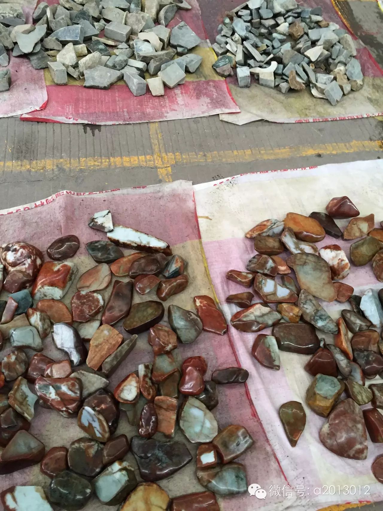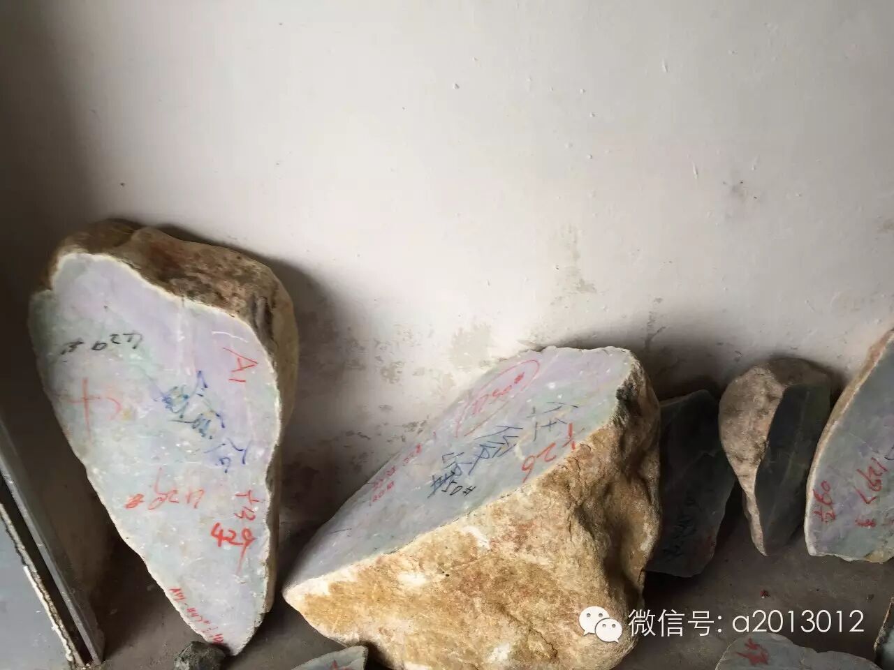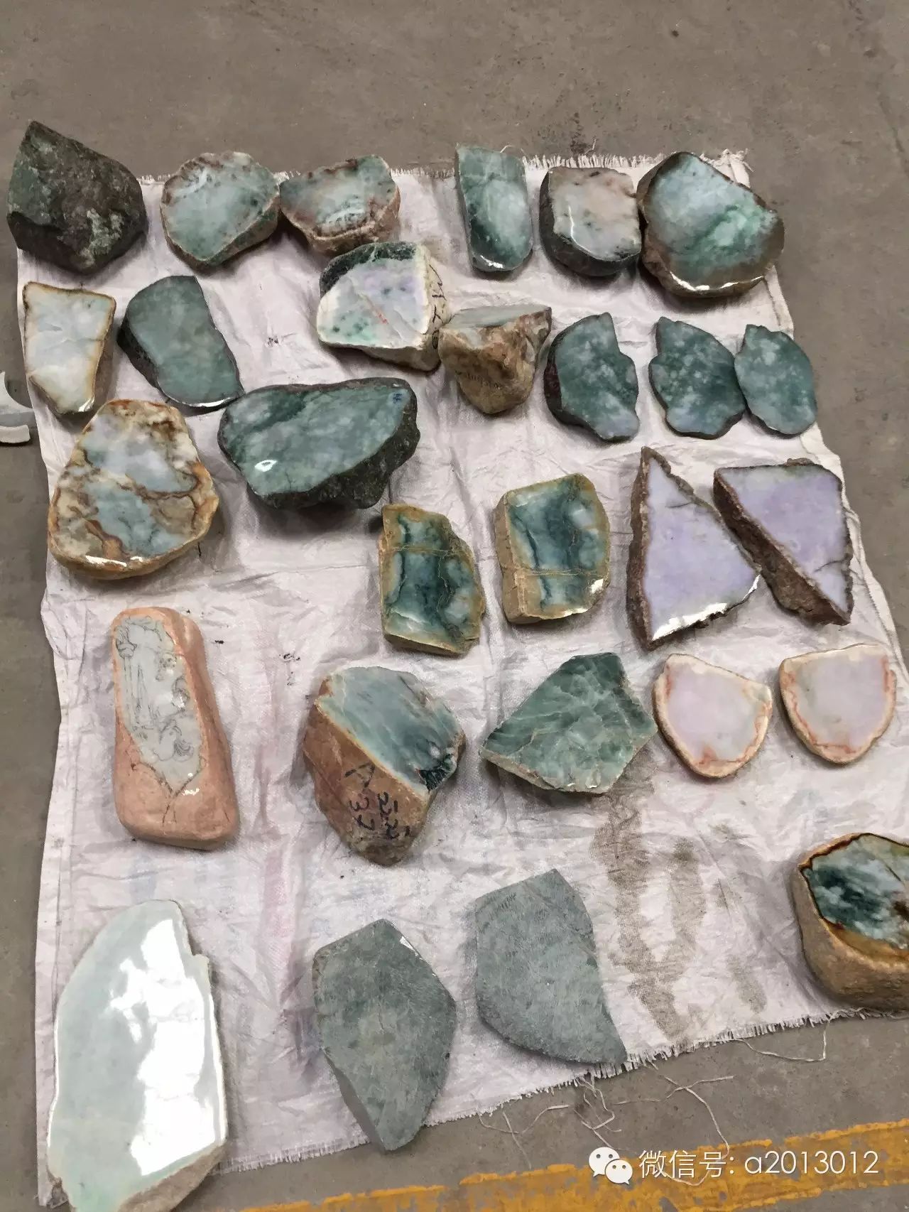 再看看这些一分为二的半明料,行内也叫砖头料。市场上和国内一些地方公盘上大部分是这种料: