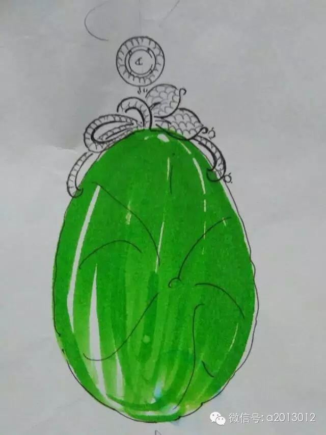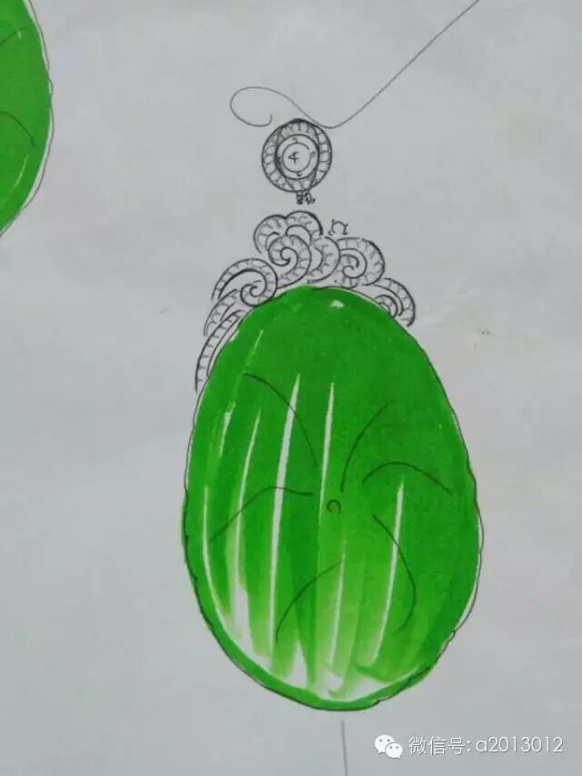 如果遇上了一些大家伙都喜欢的的好种好水好色的边角料怎办么?没关系,事在人为。可以来极具时尚的金镶玉——金玉组合中“金”象征着男性的刚强,“玉”象征着女性的柔美,所以金玉的组合也代表了男人与女人的结合。在翡翠饰品的制作上,也显示出了金与玉的组合,即翡翠金镶玉,所以有了“金玉良缘金镶玉”的说法,意思是有情人终成眷属。请看设计师们的草图: