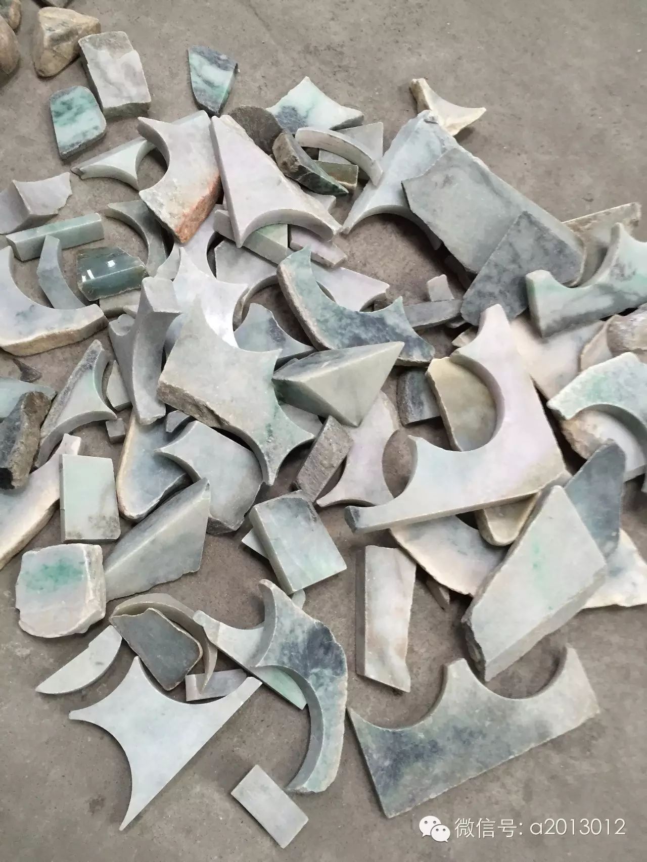 一块翡翠原石切割出来做成成品后,多多少少都会留下一些边角料,很多人大惑不解,这样的边角料有用吗?其实不然,翡翠边角料还是大有用处的。我们先来看看边角料长啥样: