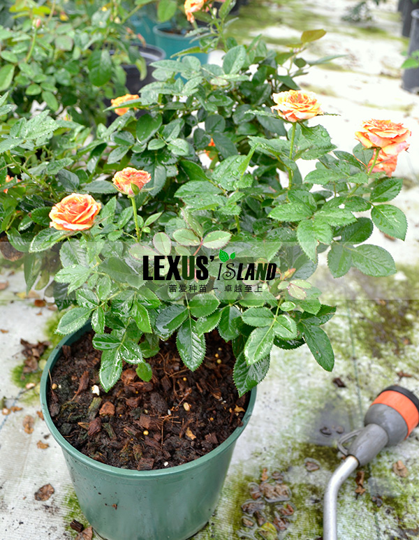 以此类推即可。换盆应该遵循循序渐进原则,在春,深秋或初冬,温度凉爽的季节进行,减少伤根死苗的风险。新苗首次换盆不超过1加仑,半年到一年后,换2加仑,之后换3-4加仑,不想苗的株幅太大的,经常修剪控制,可最终控制在4加仑以内是完全没有问题的。微型月季品种,可以控制到1加仑。