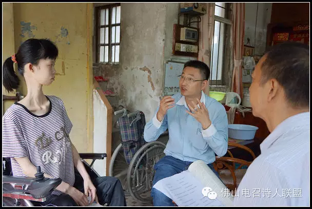 电召诗人、广东省青工作协主席、佛山市艺术创作院专业作家周崇贤为妍妍读诗,并勉励她坚强乐观面对人生。http://mmbiz.qpic.cn/mmbiz/GsqFcM8Ymndp4fCGoHGmFHnRE71URKatbKmHgB5pQ2p7fXZa67Jkznqk4j6IhzK8sxTgqeJ8l9hsNm3gu1PgRA/640?wx_fmt=jpeg&tp=webp&wxfrom=5