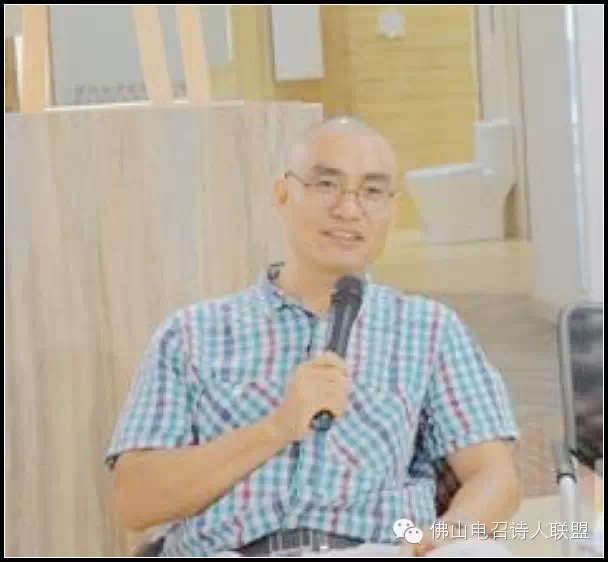 电召诗人、佛山市作协文学院副院长郭杰广陶醉在朗诵的意境中。