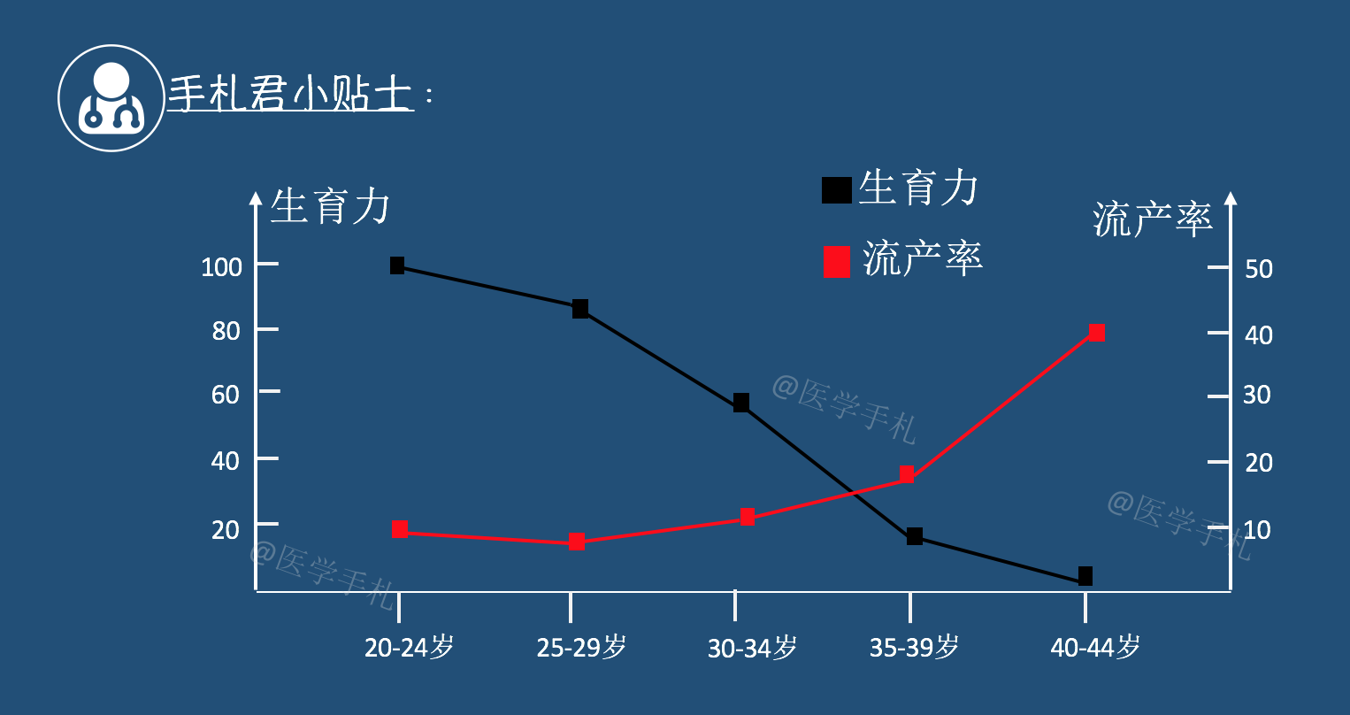 年龄超过35岁,生育力明显下降,流产率显著上升