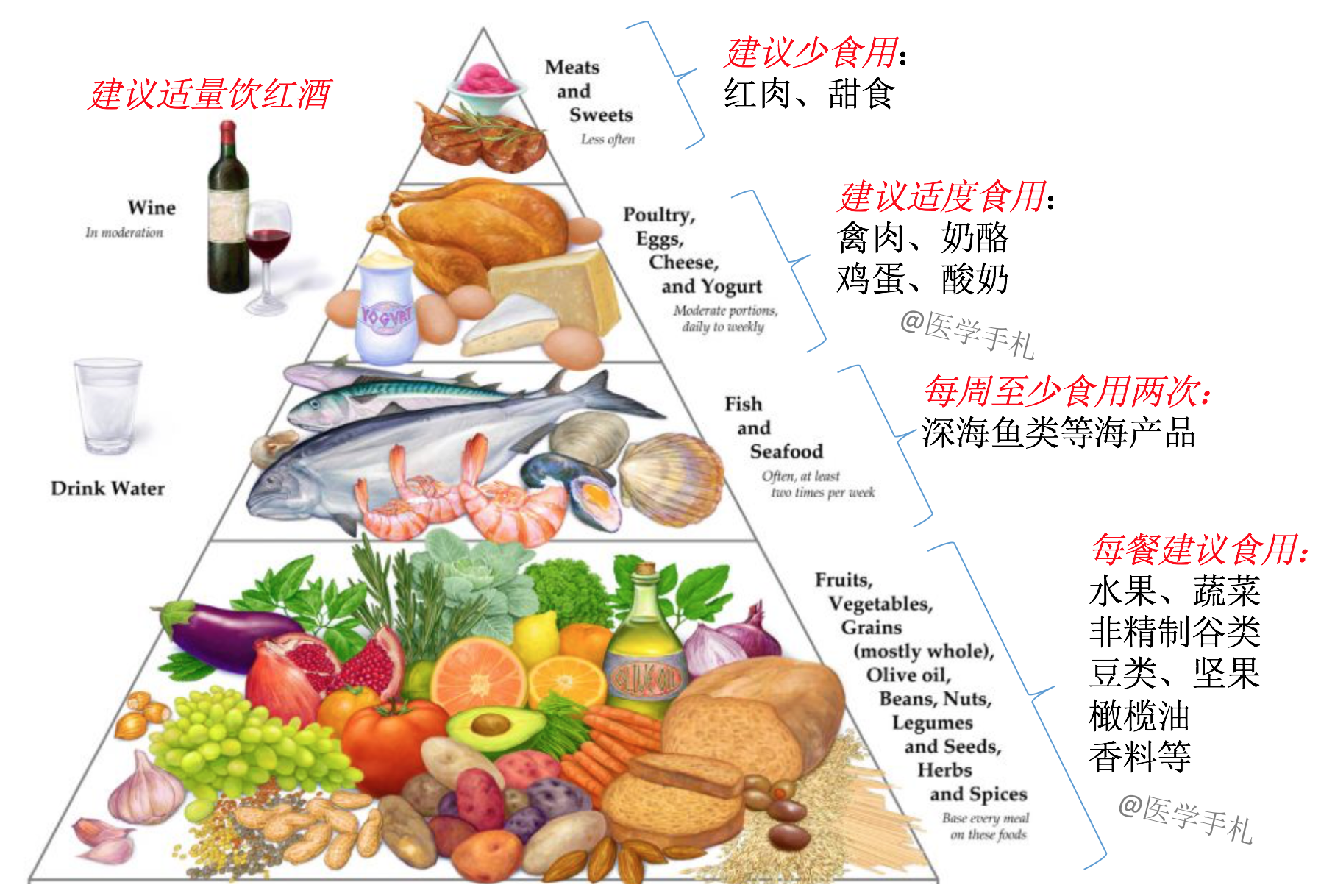如果觉得理解费劲,手札君把地中海饮食金字塔做了个翻译版,拿走不谢: