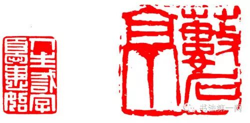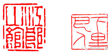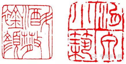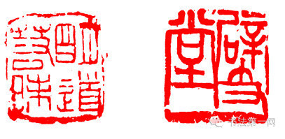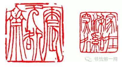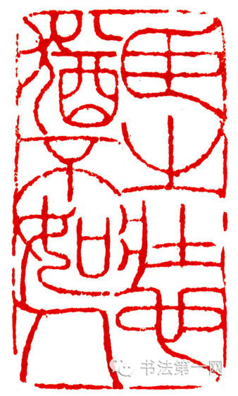 这也是对笔画多或少的印文的处理方法。一些笔画较多的字,笔画可以略细一些,笔画过少的字,笔画可以略粗一些,但差别不宜过大。这种构图可以增加印面起伏,富有节奏感。