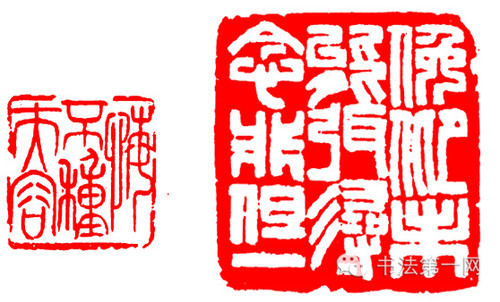 这是对文字偏旁部首的处理方法。对某些印文,可以根据异体字的写法,将一些偏旁部首适当移位,左右结构的字可以左右对调位置或变为上下结构;上下结构的字可以上下对调位置或变成左右结构,使印面新鲜、活泼、均衡。但一定要合乎“六书”,不能随心所欲,凭空臆造。
