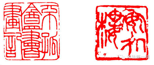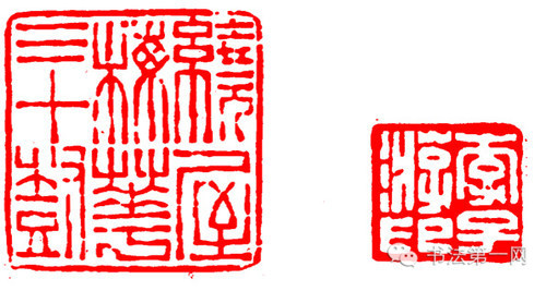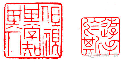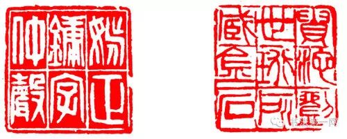 这也是对笔画较多且多为包围结构的印文的处理方法。可以用印文的靠边的笔画代替边框,这些笔画即是边框,又是印文的笔画,身兼二职。