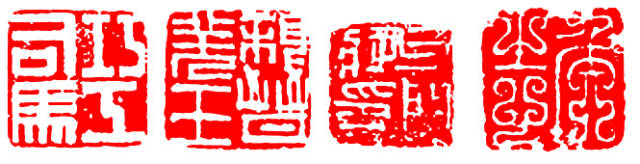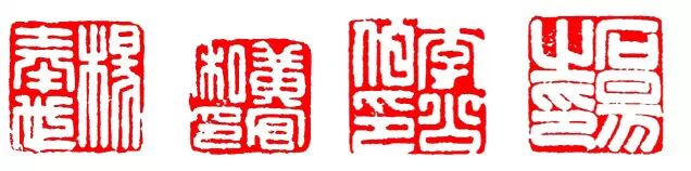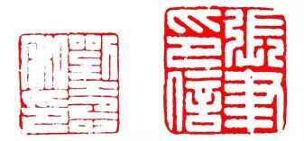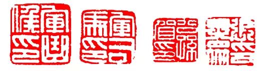 汉印中,由于线条多粗重,因而线之间距极小,加之印内数字之间的行距亦清楚而紧密,故显得在整体上有亲密团聚之感。