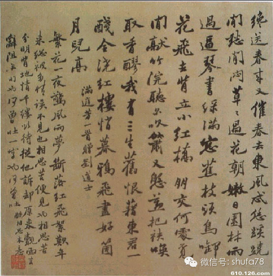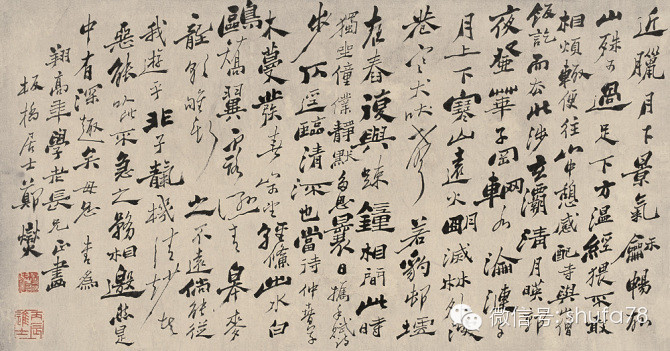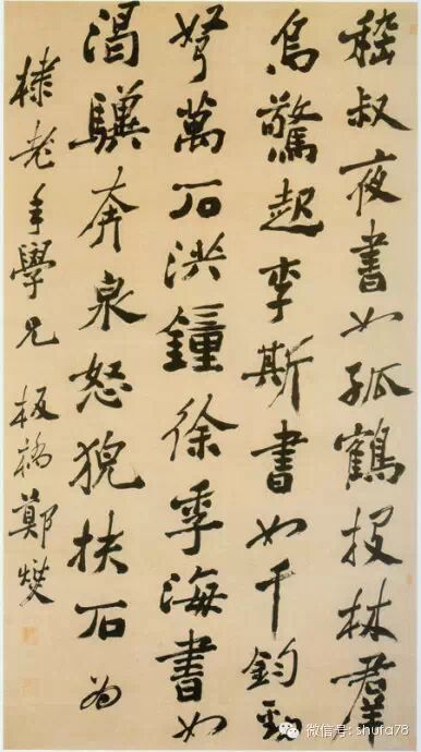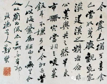 说到书画同源,从郑板桥的书法作品中,我们还可以体会到,他以行草笔法写出的六分半书,其中就掺入了他画兰竹的笔法,清人蒋士铨在其《忠雅堂诗集》中云:“板桥作字如写兰,波磔奇古形翩翻;板桥写兰如作字,秀叶疏花见资致。下笔别自成一家,书画不愿常人夸;颓唐偃仰各有态,常人尽笑板桥怪。”