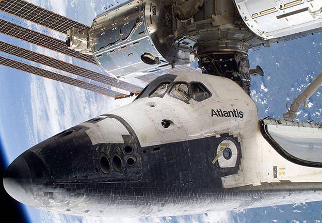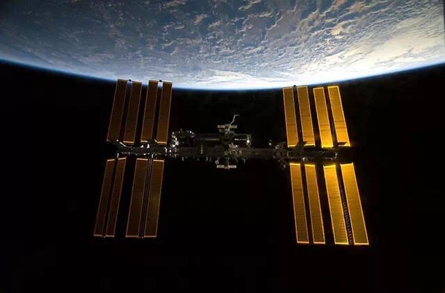 这张照片拍摄于航天飞机与国际空间站对接的时间