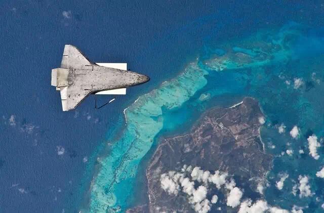在这张照片中你只能看到航天飞机的底部,国际空间站的飞行区,以及尚未载货的机械臂。