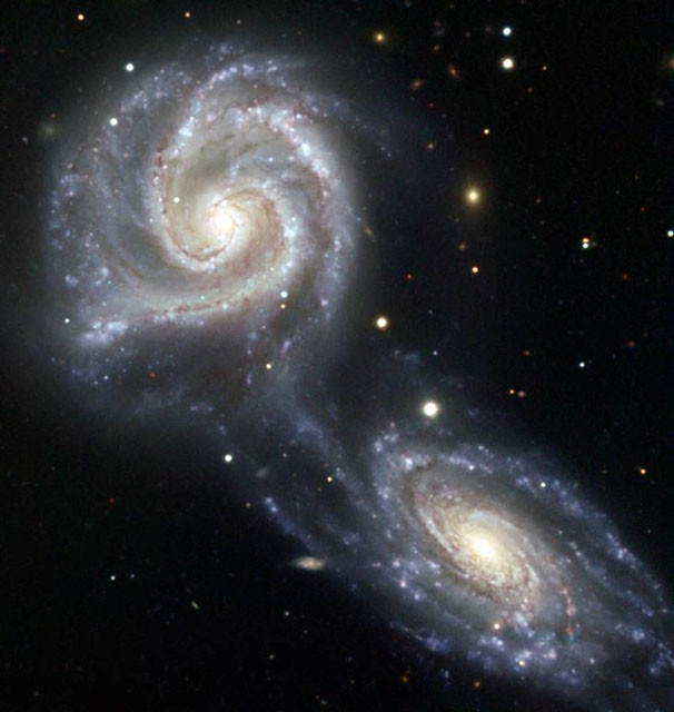 这两个星系,星系NGC 5426和NGC 5427大小几乎相同,并都位于处女座。 星系彼此非常接近,但还没有近到可以让其恒星互相碰撞到。