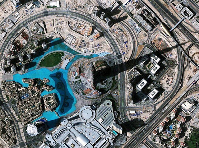 地球上最高的建筑:迪拜的哈里发塔(高828米)它的影子即使在太空中也清晰可见。