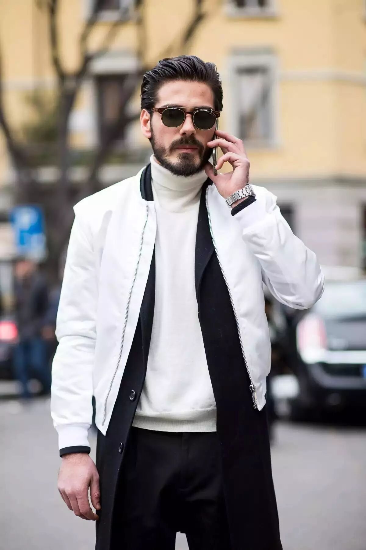 夹克一般都比较修身,除了可以防止灌风,在外面套大衣也完全不会显得臃肿,这样的搭配相对正装的叠穿也更随意。