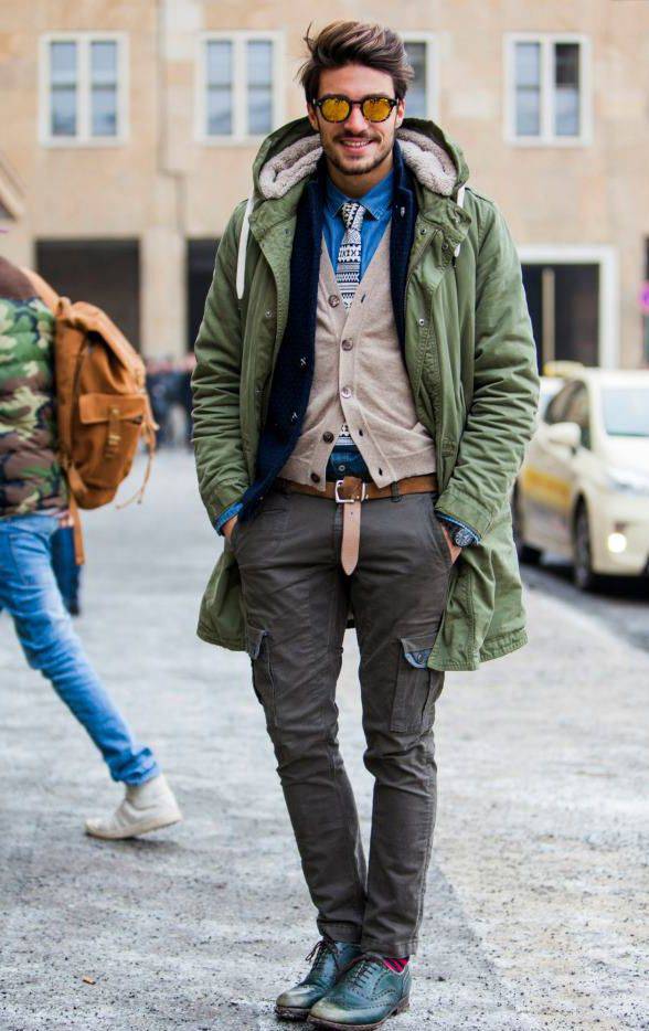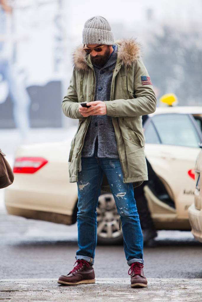 由于Parka本身比较宽大随性的视觉效果,只要Parka能套得住,老爷们就可以放心的往里面穿。
