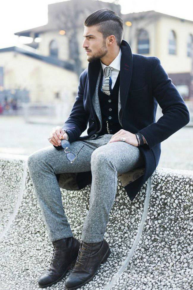 大衣 正装是很典型的直男上班着装,也是比较常用的的冬季叠穿方式,这招不仅解决了正装不够厚的问题,还非常明显的提升了气势。