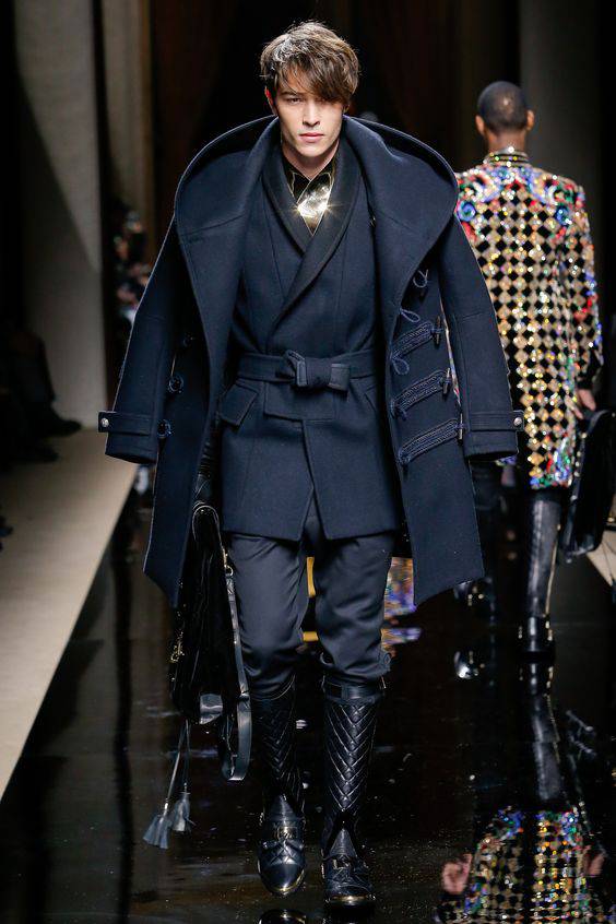首先,穿在里面的大衣一定要修身,最好是短款,然后在外面套一件长款稍微宽松一些的大衣做外套。