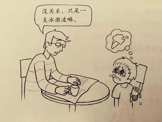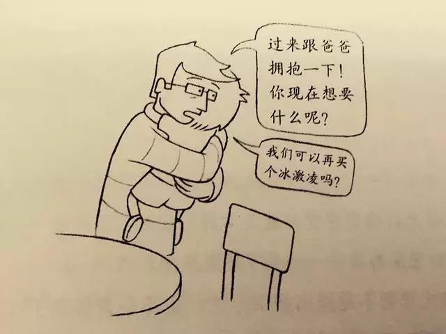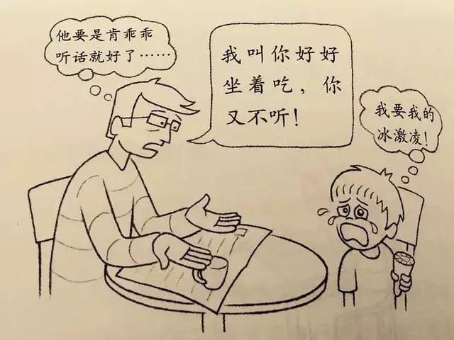 孩子完全没有生气,喊叫!孩子提出再买一个,爸爸答应的话可以趁机让孩子明白以后吃冰激凌的时候,不要摇晃椅子;如果爸爸不再给孩子买冰激凌,最好先向孩子解释原因,让孩子自己思考。