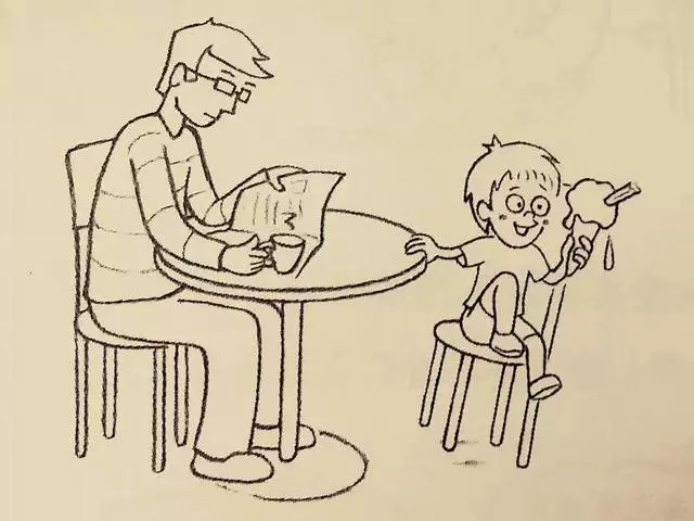 爸爸——尝试站在孩子的角度上思考,虽然不该摇晃椅子,但知道现在不是教训孩子的好时机。