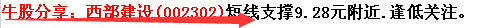 9:52:可喜可贺,弱势行情盘面为数不多的亮点被轩阳抓住了,昨天早盘轩阳牛股分享点评推荐的金股:西部建设(002302)昨天强势涨停,今天开盘也再次涨停,不过目前涨停被打开,大家就要注意止盈了。同时也要恭喜有紧跟随直播的铁粉,两天收益高达18%,这是新年最好的礼物。早盘直播原话如下: