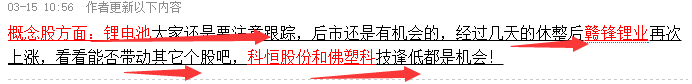 10:32:锂电池开始异动,这样的表现符合轩阳的预期,近期调整的时候轩阳都是反复提示大家要把握低吸机会的,其中重点点评推荐的科恒股份和佛塑科技表现强势,锂电池的第二波攻势一触即发,大家请坐稳扶好!直播原话如下: