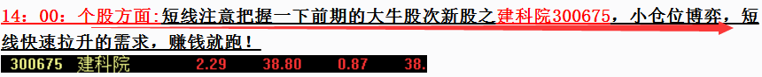13:42:早盘虽然轩阳没时间更新直播,但是一点也不妨碍直播推荐的牛股上涨,昨天尾盘点评推荐的超级短线股之建科院300675昨天尾盘放量拉升后,今天也再次6%,短线博弈成功获利,这样的操作大家还满意嘛?两天赚10%以上,昨天直播和操作原话如下: