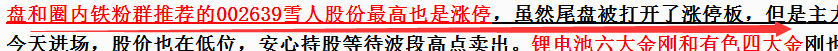13:48:人不在看盘,但是直播接二连三的传来喜报,昨天早盘直播和圈内铁粉群点评分享的超级牛股之雪人股份002639昨天虽然尾盘打开了涨停版,但是一点也不妨碍今天的拉升,盘中最高拉升5个多点,两天又赚了10%以上,这样的赚钱机会只要各位能紧跟随直播,自然就不会错过,该股也是中长线品种,盘中波段操作的价值很大,大家好好把握!昨天直播原话如下: