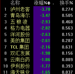 总结:下午大盘会小幅回升,但是没有力度的反弹无任何意义;蓝筹股和白马股的破位暴跌,给了我们启示:郭嘉队支持“价值投资典范”的股票下跌;这个板块大家暂时不要碰,都是基金机构在砸盘;题材股正式进入到调整期,温度会一步一步的降低,切勿追高;