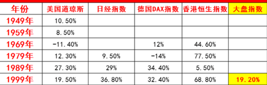 解读:经过这么一对比,中国股市真的是“小鲜肉”一枚!面对还没有完善的“人生定位”,非理性的暴涨暴跌、奇葩个性的波动,也应当被我们接受,毕竟还是个“小屁孩”!无论他的选择是什么,我们都应该以敬畏的心态去接受、去面对!大家此表,是不是大概率“逢9必涨”呢!十年一轮回,上一个10年(2009年:1664-3478点),大盘涨了80%,想想就振奋不已啊!转瞬间,又到了2019年,随着全球经济的下滑、不确定性,整个2018年已经消化了一整年,看来2019年大概率会继续上演:“逢9必涨”的历史性规律!2009年行情:大涨80%,是因为2008年大盘大跌了3440个点;反弹了一半左右!2019年行情:?,2018年大盘大跌813个点,如果按照反弹一半的规律,2019年反弹到2900点的概率,很大!综上所述,2019年涨的概率,是最大的!