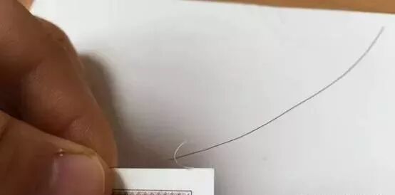 笔者用专业方法将纸币裁掉0.2毫米左右,裁剪下的纸线可以和头发一样细,如下图。