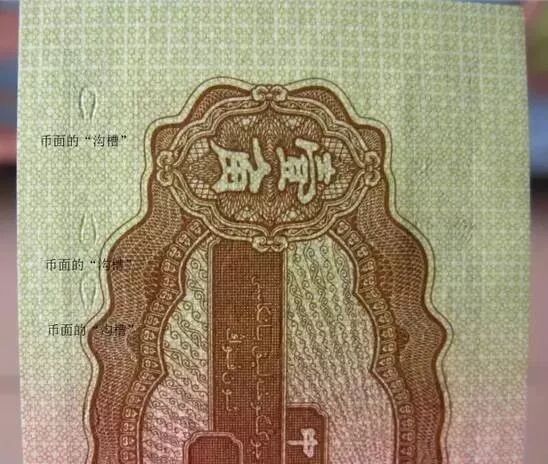 二版人民币中的壹角版,此品种在印刷过程中留有明显的沟槽。如果下水修复,币面的“沟槽”会变浅,这是分辨此品种是否下水修复的重要方法。