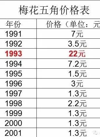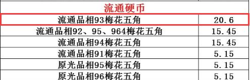所以93年梅花五角的市值喜人,现在单枚93年梅花五角大约在22元左右,增值了40多倍!
