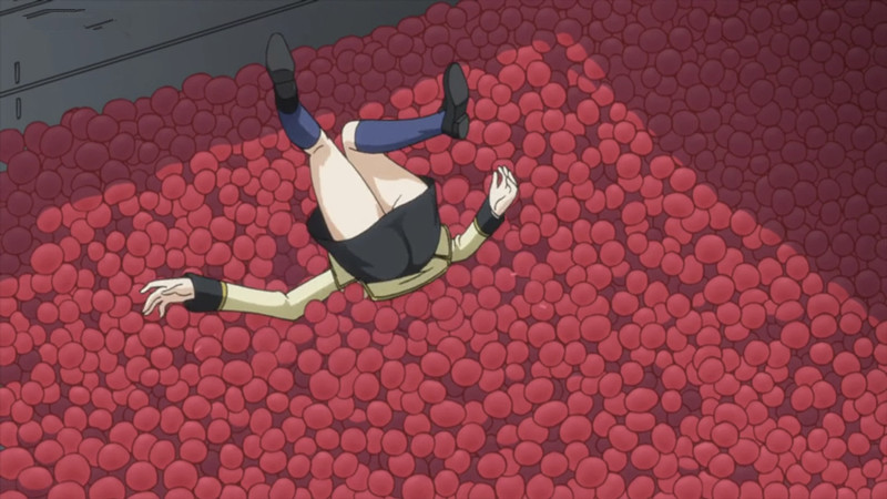 【绅士解析】:走光并不是所有时候都那么优美,比如说被鲁鲁修一把推下栏杆的C.C就是这种类型。不过这种因为别人的行为而走光的情节在动漫中也挺多的。除开鲁鲁修这无情的一推之外,最具有代表性的还是要属结城梨斗大人的神摔技能和智神风骚的窥探女澡堂的技能。不过看见C.C.女神这样狼狈的场景还真的挺少的。