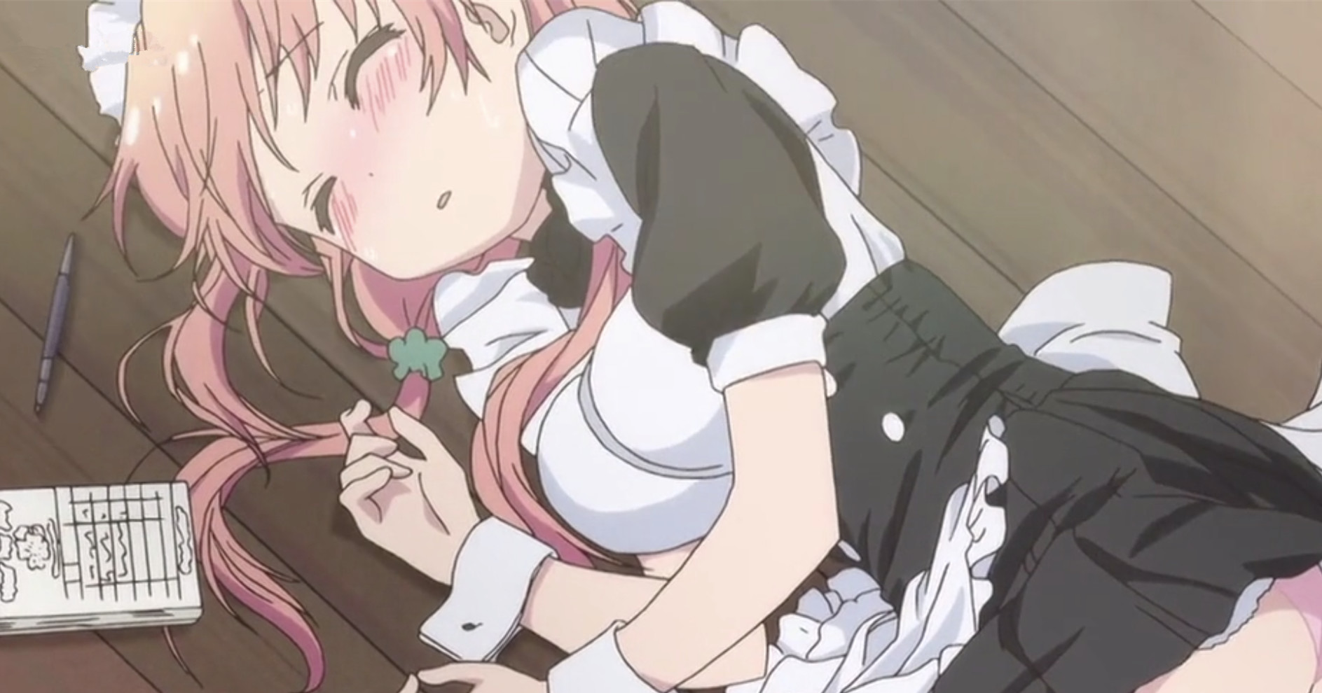 【绅士解析】:摔倒也是走光的常见方式之一。想必少年们早就看过了动漫中各种各样的摔倒,比如说什么被人撞到、走路踩到小石头、被人扑到了地上、感冒晕倒等等。总之,摔倒的方式虽然千千万,但得到的效果都是一样的,那就是那些美少女们都会或多或少地走走光,也许不同之处就只在于走光的程度上。但其实走光也是非常需要技巧和脑细胞的,从这点来看《出包女王》表现得非常优秀。