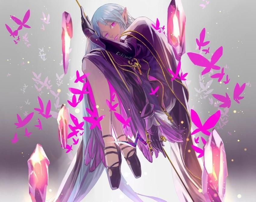 葛木宗一郎的“从者”。将讨厌的原御主杀了的她在柳洞寺一带快要消失之际被葛木宗一郎所救。虽然性格扭曲,不过只要决定了就会为那个男人贡献到底的她,现在正将感情灌注于宗一郎一个人身上。穿着靛紫相间的连帽斗篷和紫色长袍。真面目被兜帽遮了起来,看起来像传说中神秘的巫师。一眼看去是艳丽的美女,脱下了兜头帽反而是素朴的美人。拥有蓝色的长发和瞳孔,长着明显区别于常人的尖耳朵。左耳边梳有一条辫子。涂着紫色的口红。