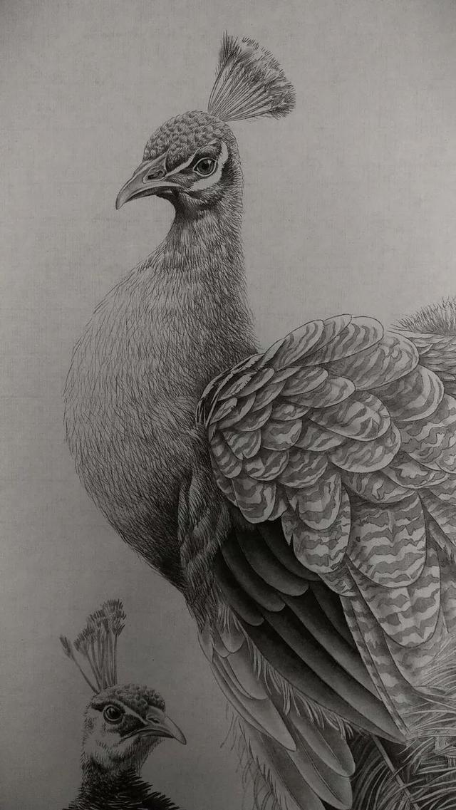 陈松岩,号乐仙,70年,副教授,自幼喜画,后自学工笔,无师无门派,不参加各种形式美展,不是任何协会会员,近几年在作品中融入西画理论,公益为工笔画初学者授课,领大家一起画工笔。