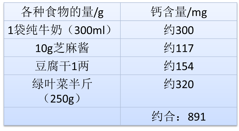 补钙算一算(粗算,食物的品种不同,含钙量也不同)