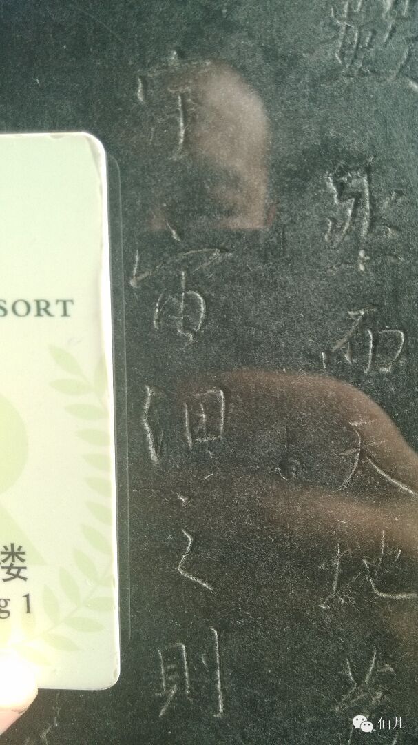 下面这几张图片,是我在西安碑林现场拍摄的原碑(原碑上都有玻璃罩着,并没有直接接触文物)。下图的左边的对比物,是一张宾馆的门禁卡,和普通的银行卡、信用卡一样大,通过对比可以看出,一张信用卡纵向可以绰绰有余地装下《多宝塔》的三个字,《玄秘塔》的两个字,集王《圣教序》的四个字,后面的两个隶书碑,不考虑原碑字距的话,一张信用卡也能装下三四个。这里要说明的是,古人即便有放缩技术,也不会在这种场合用,所以这几块碑上的字,就是书家笔迹的原大。