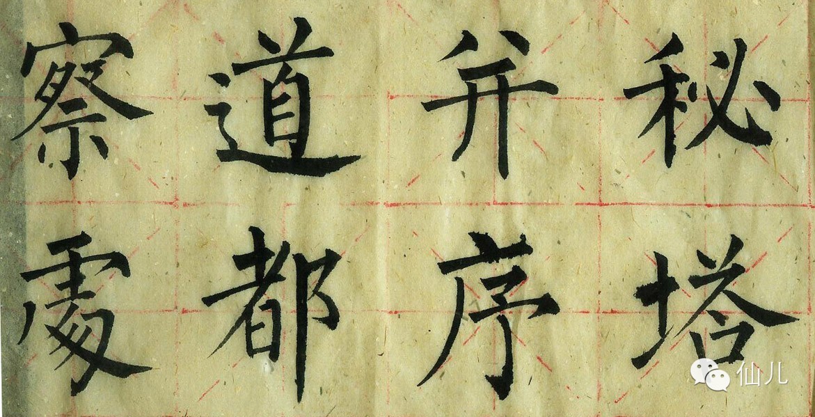 这样小的字,如何还能气定神闲的起笔藏锋,裹来描去?很多起笔就是拿笔一砍,方头就出来了;很多末尾就是用笔一带,圆头就出来了;点也是如此,用笔头一按,一个点就出来了,沾纸就走,难道还要像路线图那样给这个点擦一下屁股吗?观察许多影印件,也可以发现,真的书家写字并不是传说中那样笔笔中锋,即便是楷书,也是偏侧皆有的。若是都像示意图那样写字,那些唐代大家累也累死了。我们今天临帖,若实际大小有困难,也只应比原帖稍微大一点,仔细揣摩原帖的笔画,就知道那些空心的路线图都是欺人之谈了。