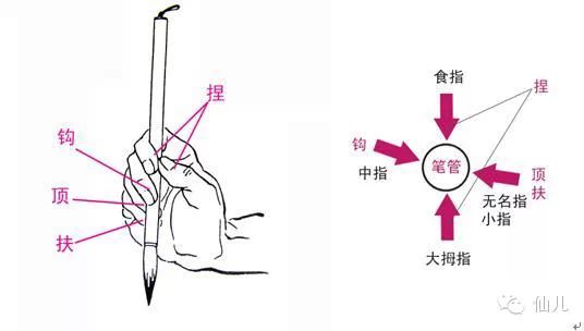 学书法的第一课,往往要教执笔。有些老师有一套教法,如五指执笔、指实掌虚、掌心要容下一个鸡蛋,笔杆要正对鼻尖,距鼻尖一尺左右。要捏得紧,从上面突然一拔,要拔不动等等。这些说道,其实有些几百年前就被人诟病,不知为何还在民间流传。