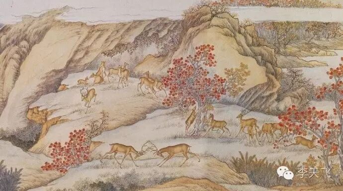 下一句“受天百禄”,更直接产生了一种绘画题材:“百鹿图”。因为鹿就是禄的同音。禄是抽象的没法画,所以只能画鹿。比较著名的有清代艾启蒙的《百鹿图》,值得提的是此人是个老外,捷克人,天主教耶稣会传教士,是郎世宁的学生。
