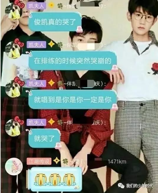 事情是这样的,昨天在排练的时候,毒唯在楼下大喊解散,最后小凯哭了,王源和千玺只是在旁边看着,据说当时是在唱歌曲《是你》的时候,据说下面拿着应援条幅的粉丝在大喊解散,不知道这些人为什么这么做?他们三个人关系都是那么的好,第一次见得粉丝巴不得偶像不好的,或许这些人根本就不能称之为粉丝吧!