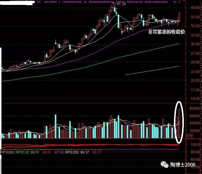 偶尔有时候,口袋支点与第二个买点(一年新高+高RPS值+明显放量+突破长期整理平台)也会重合。如下图: