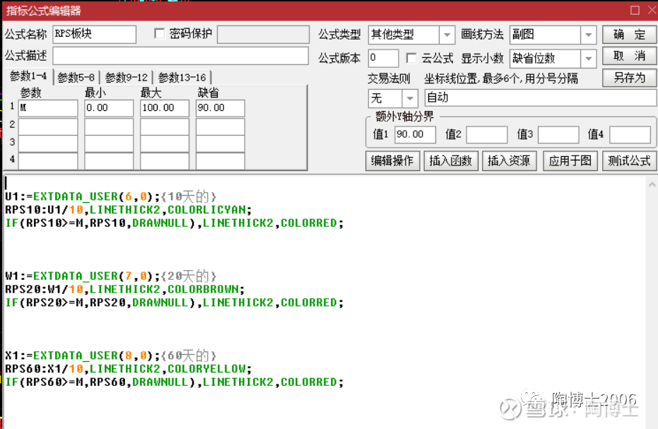 M是参数,可以根据自己的偏好设为85-90,我个人偏好90。意思就是RPS大于90时,显示为红线。
